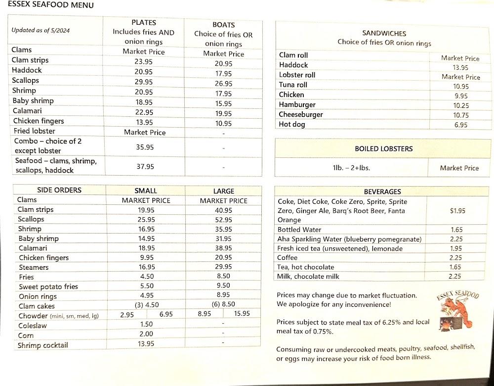 Essex Seafood stands at 143 Eastern Ave in charming Essex, MA, a hidden treasure for seafood aficionados. This picturesque town, known for its maritime history, offers a welcoming retreat for those seeking delicious seafood. The restaurant features wooden paneling for that old-school feel and a cozy ambiance. It's a great spot for families, groups, and solo diners, making it suitable for any occasion. Accessible parking and entrances cater to all guests, including families with kids, thanks to high chairs and a kids' menu. The local specialty shines through in dishes that highlight the freshness of coastal New England seafood. Whether dining in or taking advantage of outdoor seating, this spot combines comfort with flavor perfectly. Perfectly positioned for a post-hike meal or family outings, it's no wonder Essex Seafood has become a community favorite. Plus, the staff is known for their warmth and attentiveness, which enhances the overall dining experience.